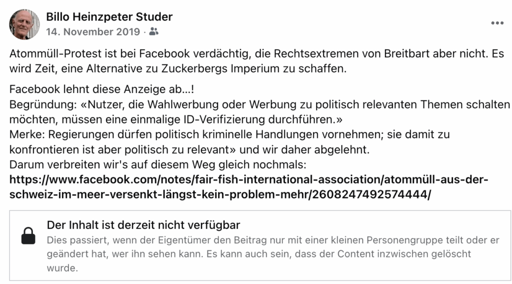 In der Schweiz leben nur ein Promille aller Menschen, aber das kleine reiche Land ist für fünf Prozent des ganzen Atommülls in den Meeren verantwortlich. Die Schweiz hätte allen Grund, sich aktiv dafür zu engagieren, dass Monitoring und Bergung der Atomfässer auf die internationale Agenda gesetzt wird.